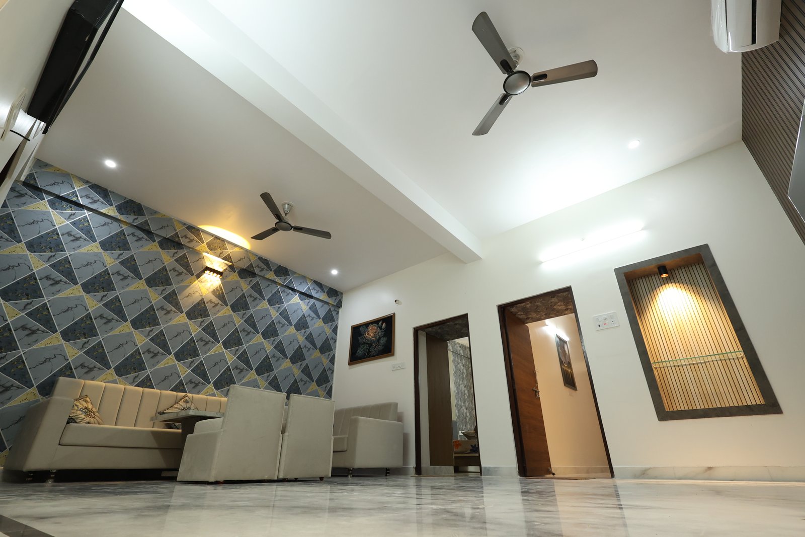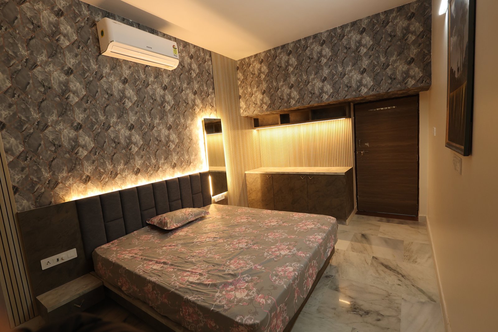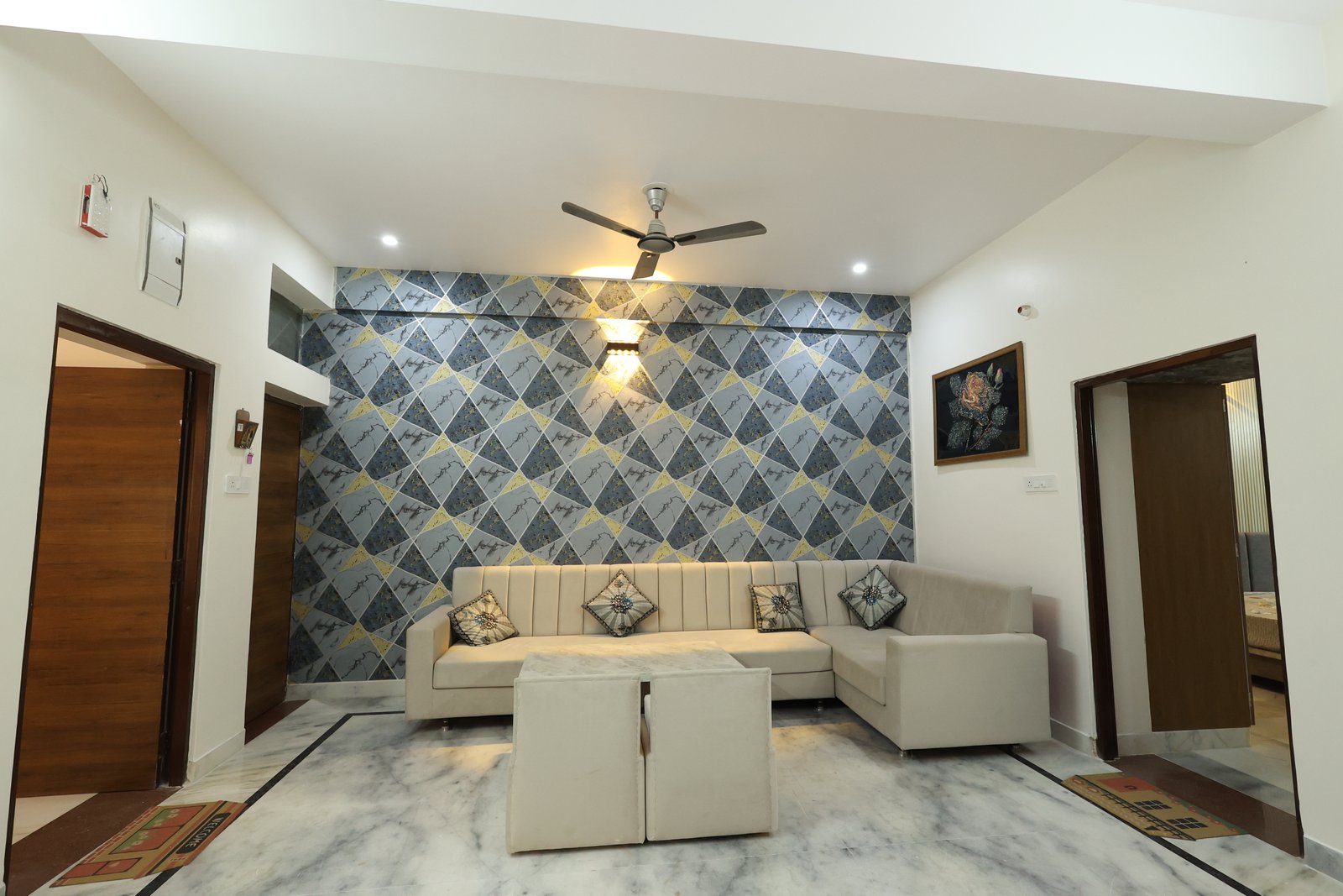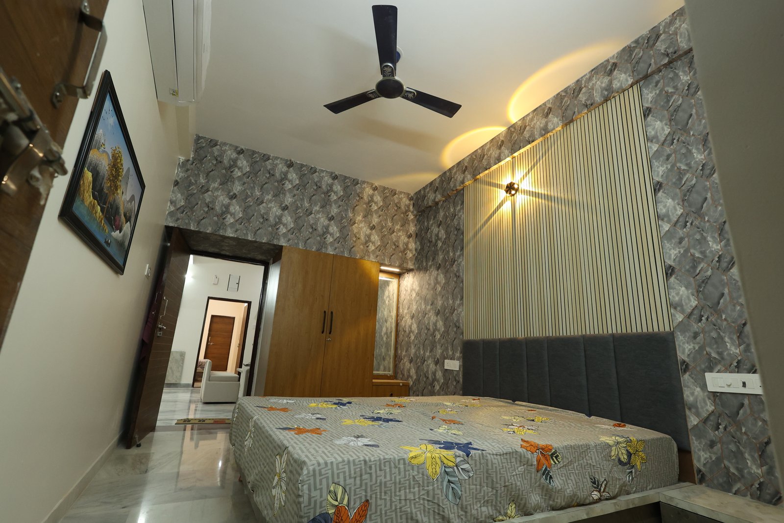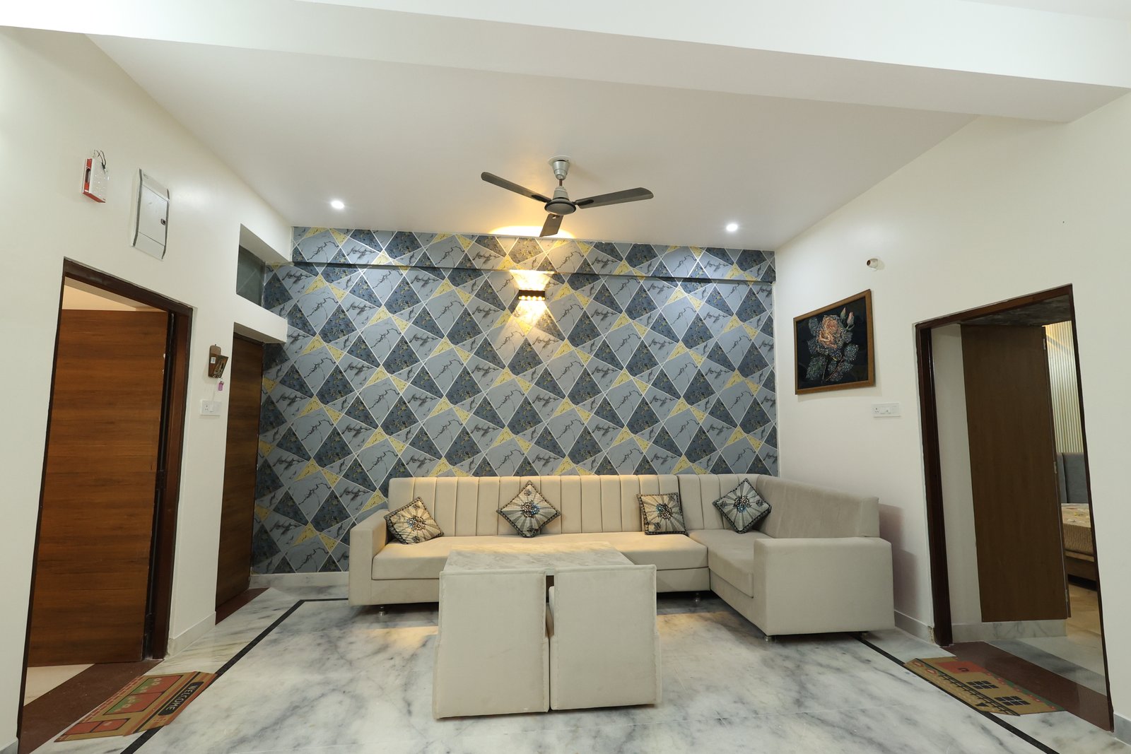 Book NowThis luxurious modern retreat in Jodhpur blends sleek style with cozy comfort. The chic living area with wooden accents and marble floors is great for relaxing or entertaining. A stylish bedroom with geometric flair offers family comfort. Perfect for reunions or parties, it features a rooftop terrace with Blue City views, Wi-Fi, local tours, and all the essentialsโideal for exploring Jodhpur and creating lasting memories.