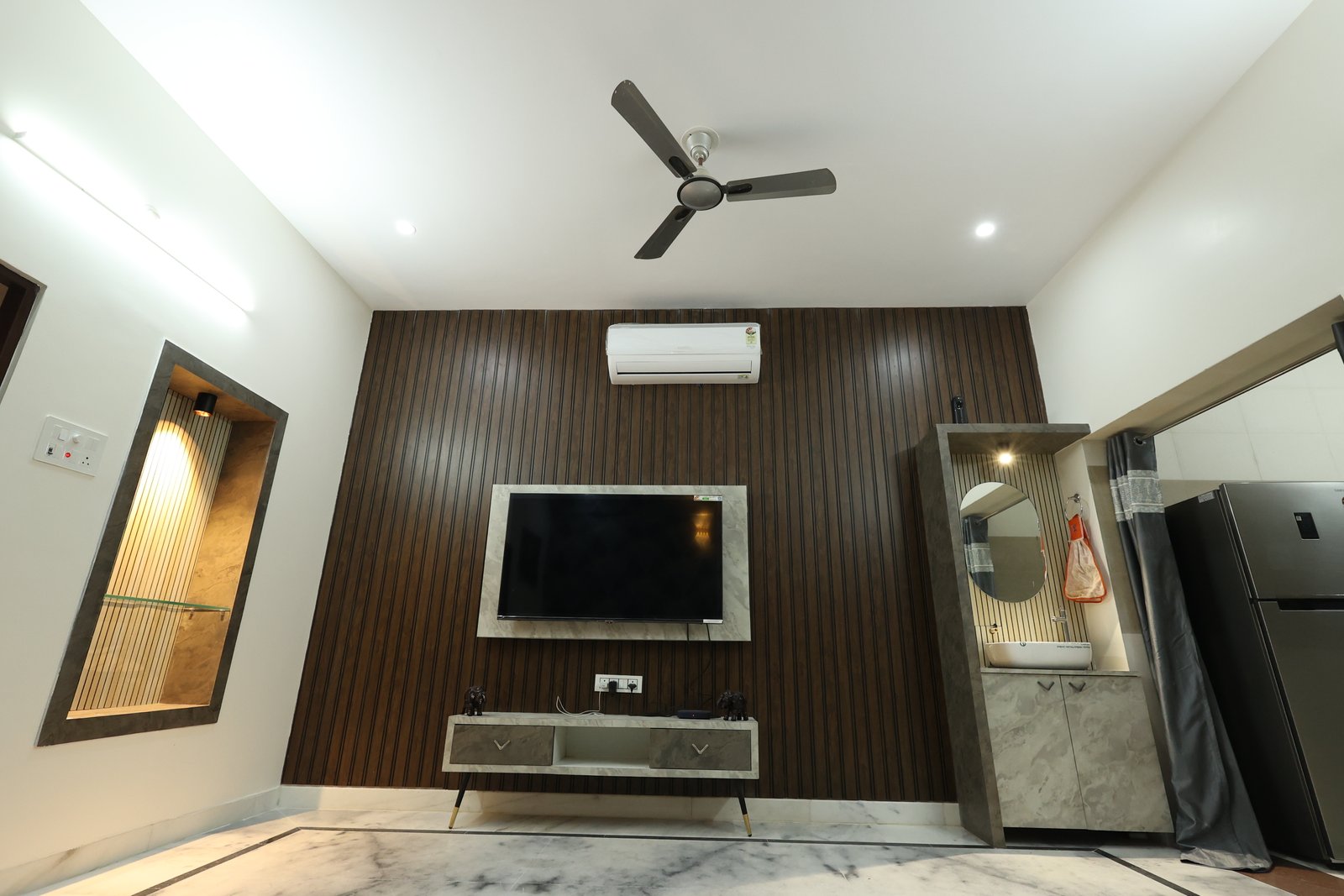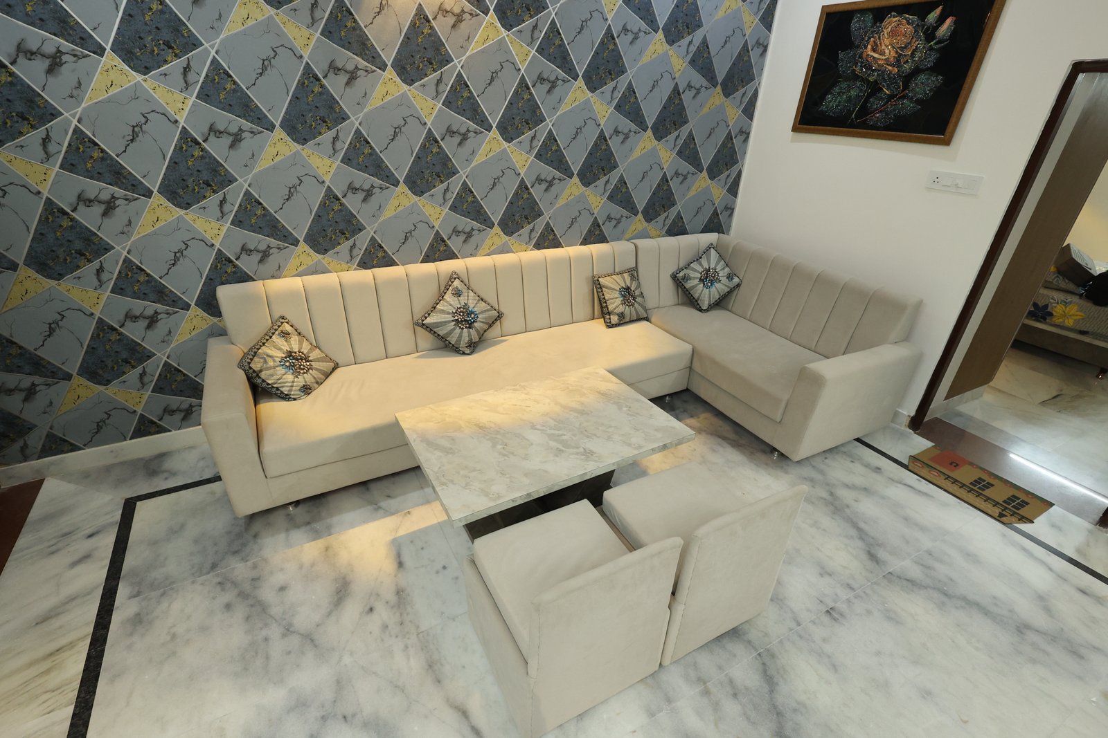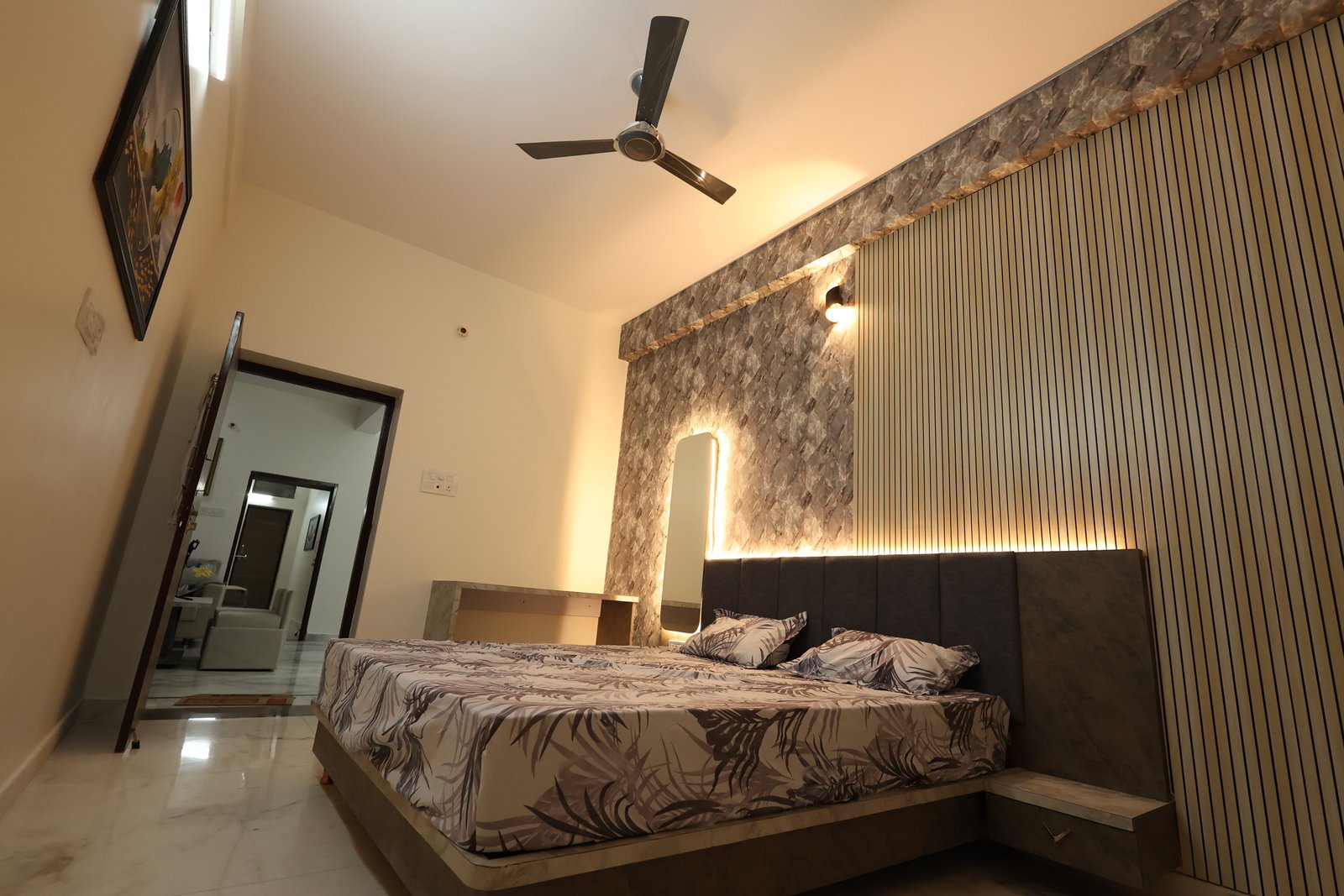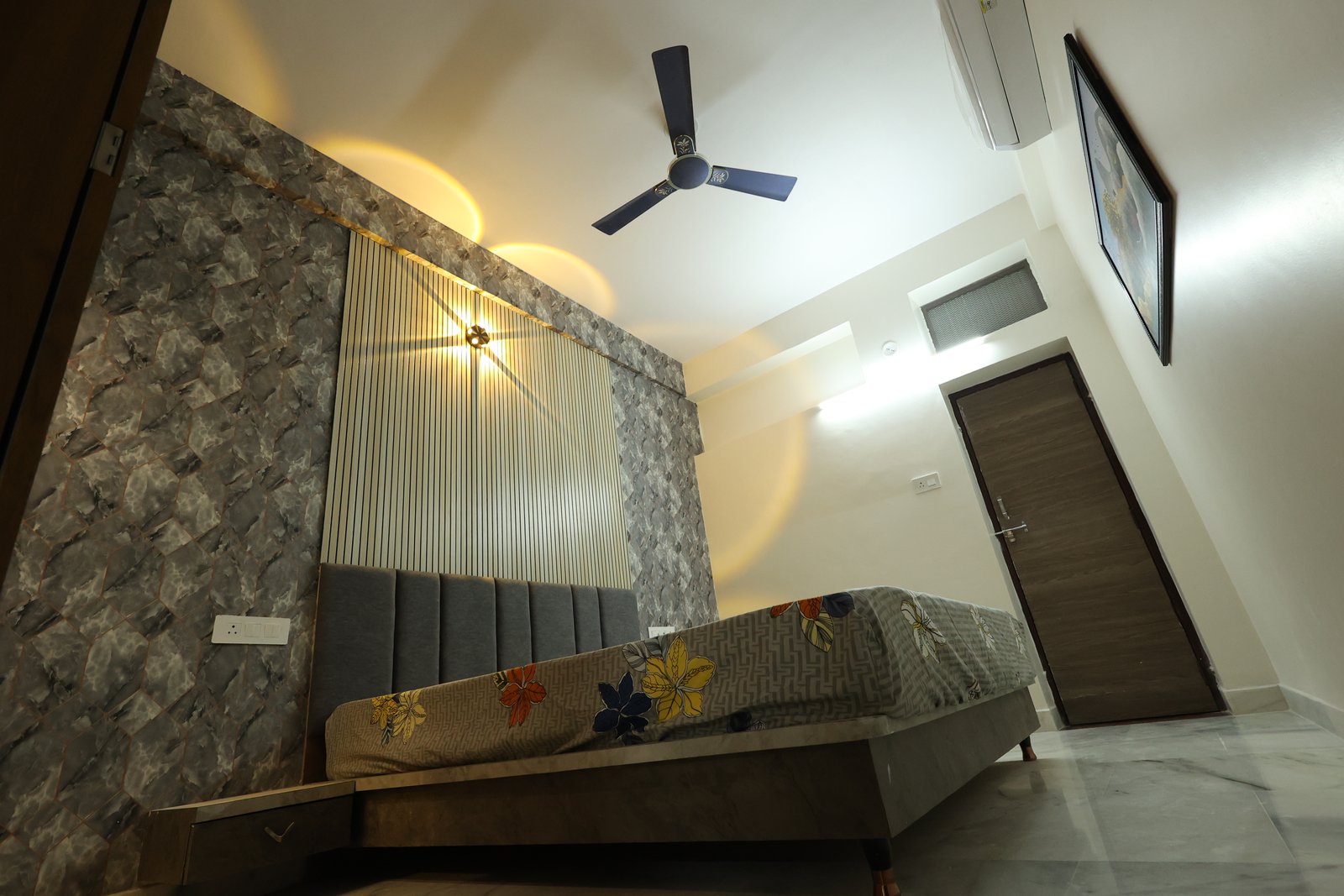 Book NowThis luxurious modern retreat in Jodhpur blends sleek style with cozy comfort. The chic living area with wooden accents and marble floors is great for relaxing or entertaining. A stylish bedroom with geometric flair offers family comfort. Perfect for reunions or parties, it features a rooftop terrace with Blue City views, Wi-Fi, local tours, and all the essentialsโideal for exploring Jodhpur and creating lasting memories.
